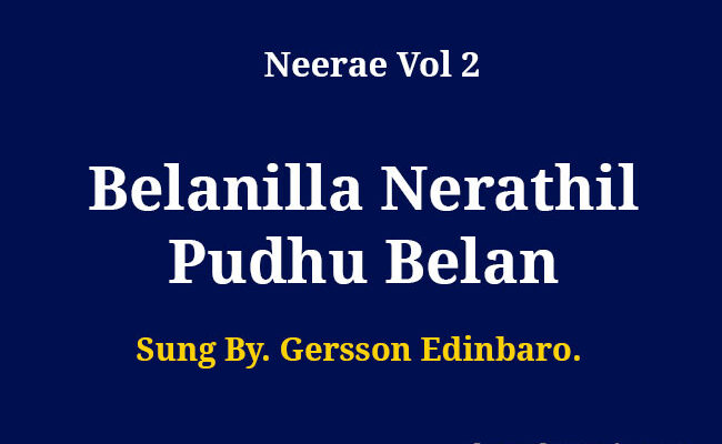 The song will strengthen us if we are weak in spiritual life. Belanilla nerathil pudhu belan Lyrics in English. Belanilla Nerathil Pudhu Belan Song Lyrics Chords PPT பலனலல நரததல பத பலன தநத எனன நர தஙகடம தடனலல நரததல தடமனம தநத எனன நர நடததடம பலன தரம பலன தரம உம பலததல எனன நடததடம.