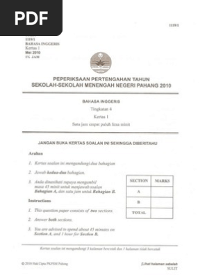 Ujian Pertengahan Tahun Bahasa Inggeris Kertas 1 Tingkatan 4 Pdf